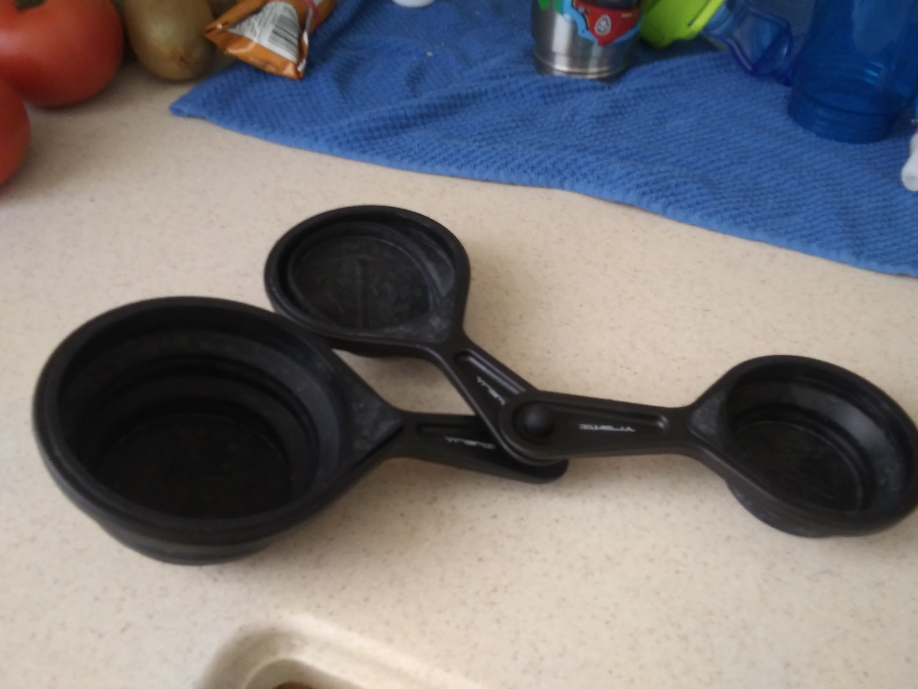 Drittes Problem: Maßeinheiten – Ach herrje. Es gibt in der Küche natürlich keine Waage. Warum auch? Alle Maßeinheiten sind in cups oder tablespoons angegeben. Also alle NICHT in meinen beiden Kochbüchern! Wer kocht auch schon mit 1/2 cups und 1/4 tablespoons? Das wusste ich natürlich schon vorher und was machen wir auch so einen Wirbel darum. Haben jetzt eine Umrechnungstabelle am Kühlschrank hängen und ehrlich: Das mit dem Lernen für Mathe hat sich erledigt, seit die Jungs immer Gramm in Cups umrechnen müssen! Prima eigentlich. Aber mich würde trotzdem noch interessieren, was ich bei der Geschichte falsch mache: Also ich hab dieses Ding (lecker Plastik und zum Zusammendrücken. Man sieht auch nach dem Geschirrspüler fast keine Überreste vom letzten Einsatz mehr. Ehrlich. Ich koch dann halt notfalls ohne Brille…). Jetzt versuch mal damit 3 cups Mehl abzumessen. Ich frag mich: Tunke ich den Plastik-Cup in die Mehlpackung? Oder Löffel ich das Zeug in den Cup rein? Und wieviel ist nochmal ein ganzer Cup? Welcher Rand zählt jetzt da? Außerdem schlabbern und wabbern die 1/2 Cup, 1/4 Cup immer mit rum oder ich muss die abmachen? Na, ich finde Augenmaß tuts auch…