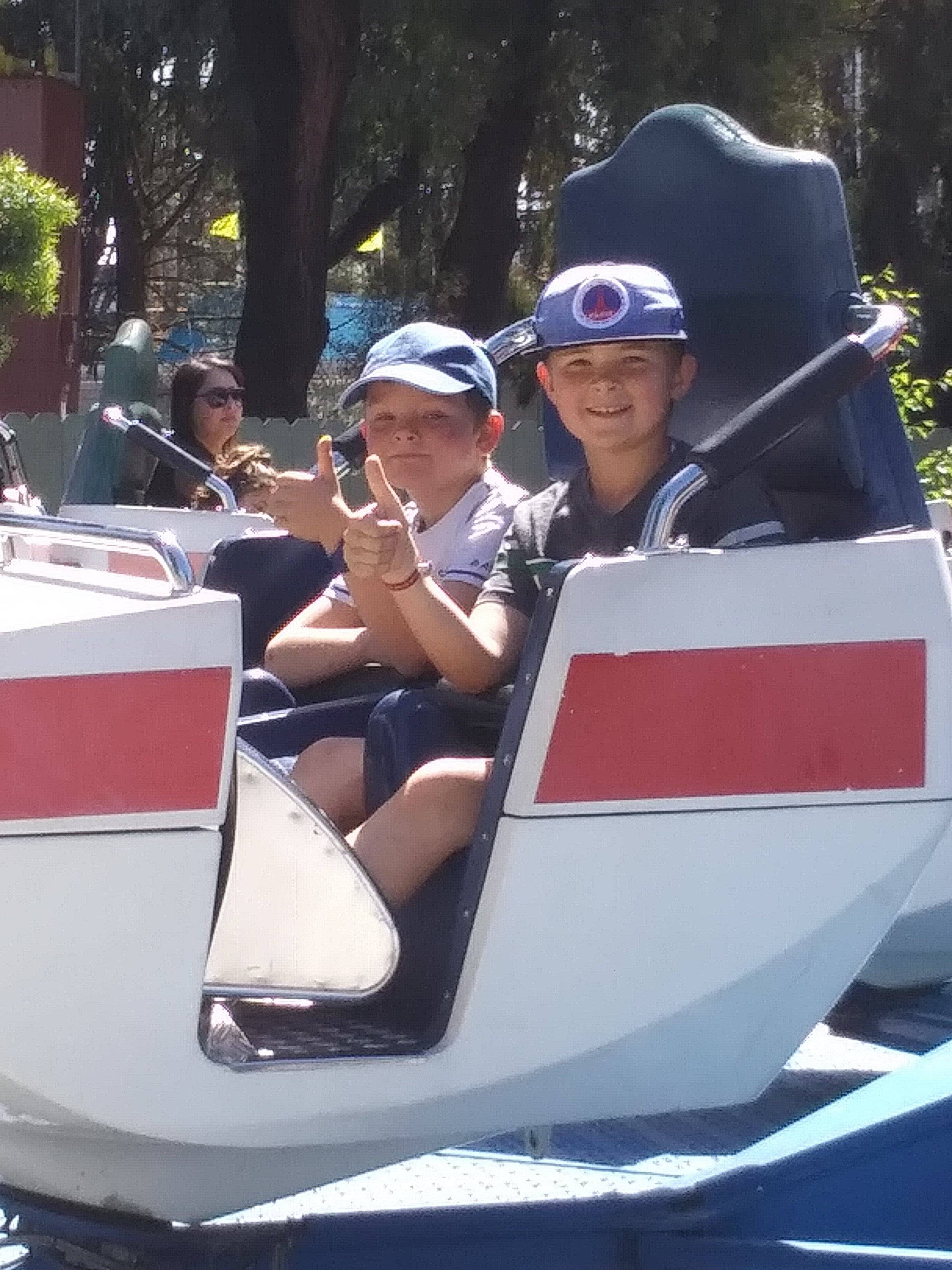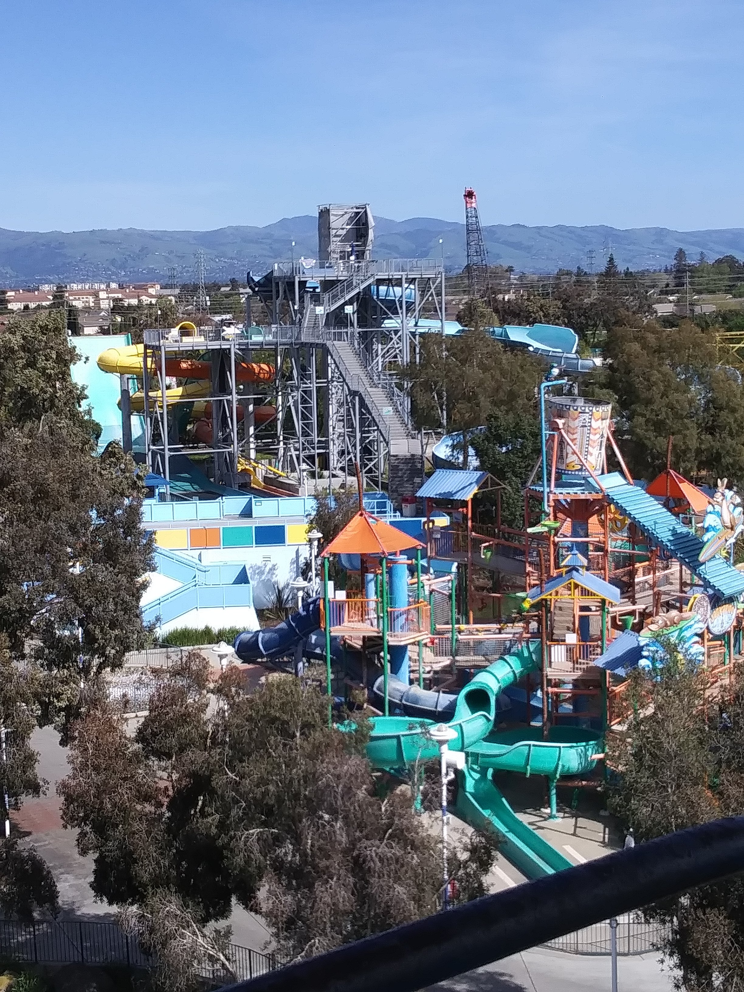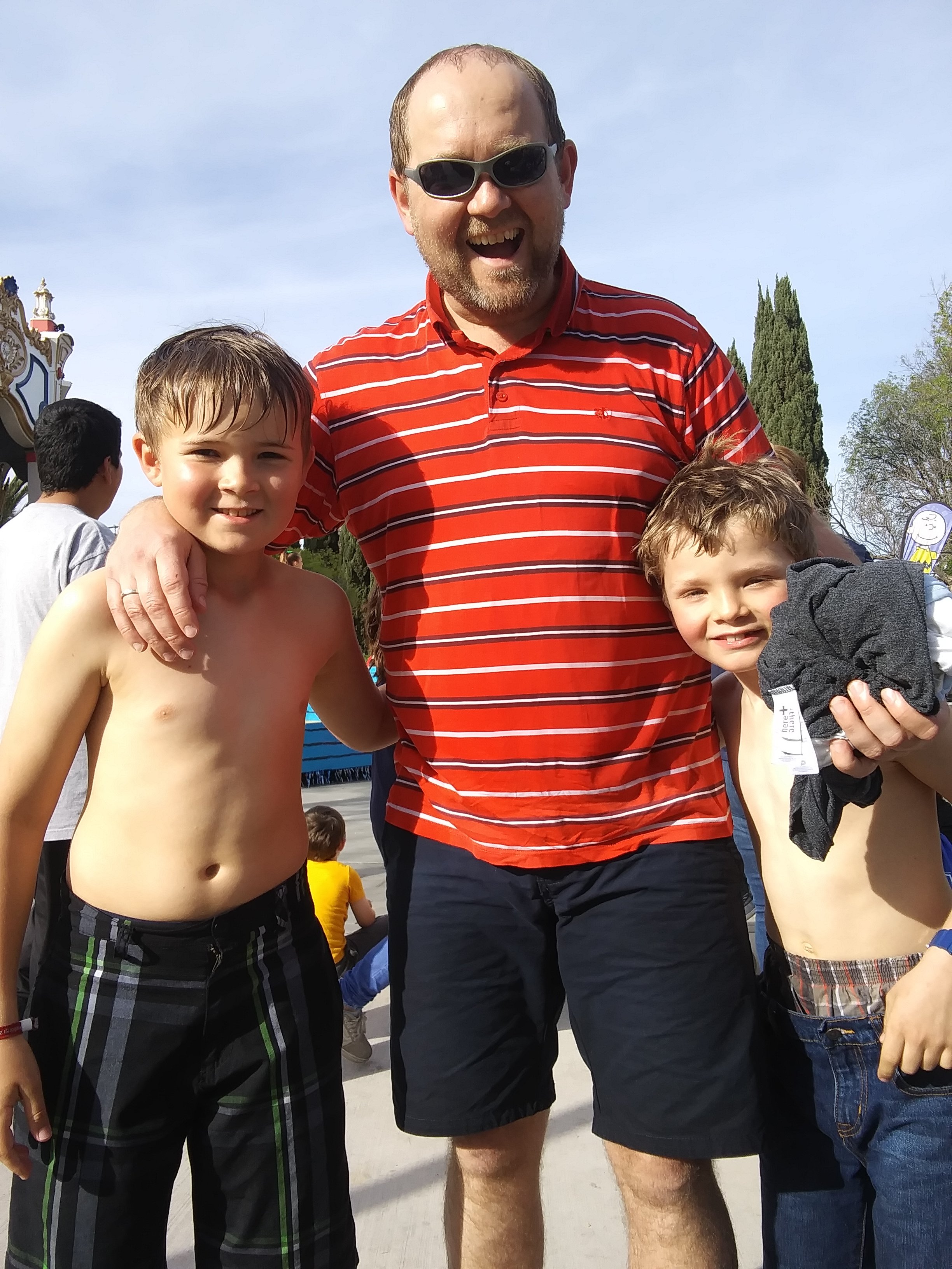 Leider sind die echten Achterbahnen, Freefall und Wildwasser so schnell – da gibts keine Fotos! Aber Spass machts – den Maennern…