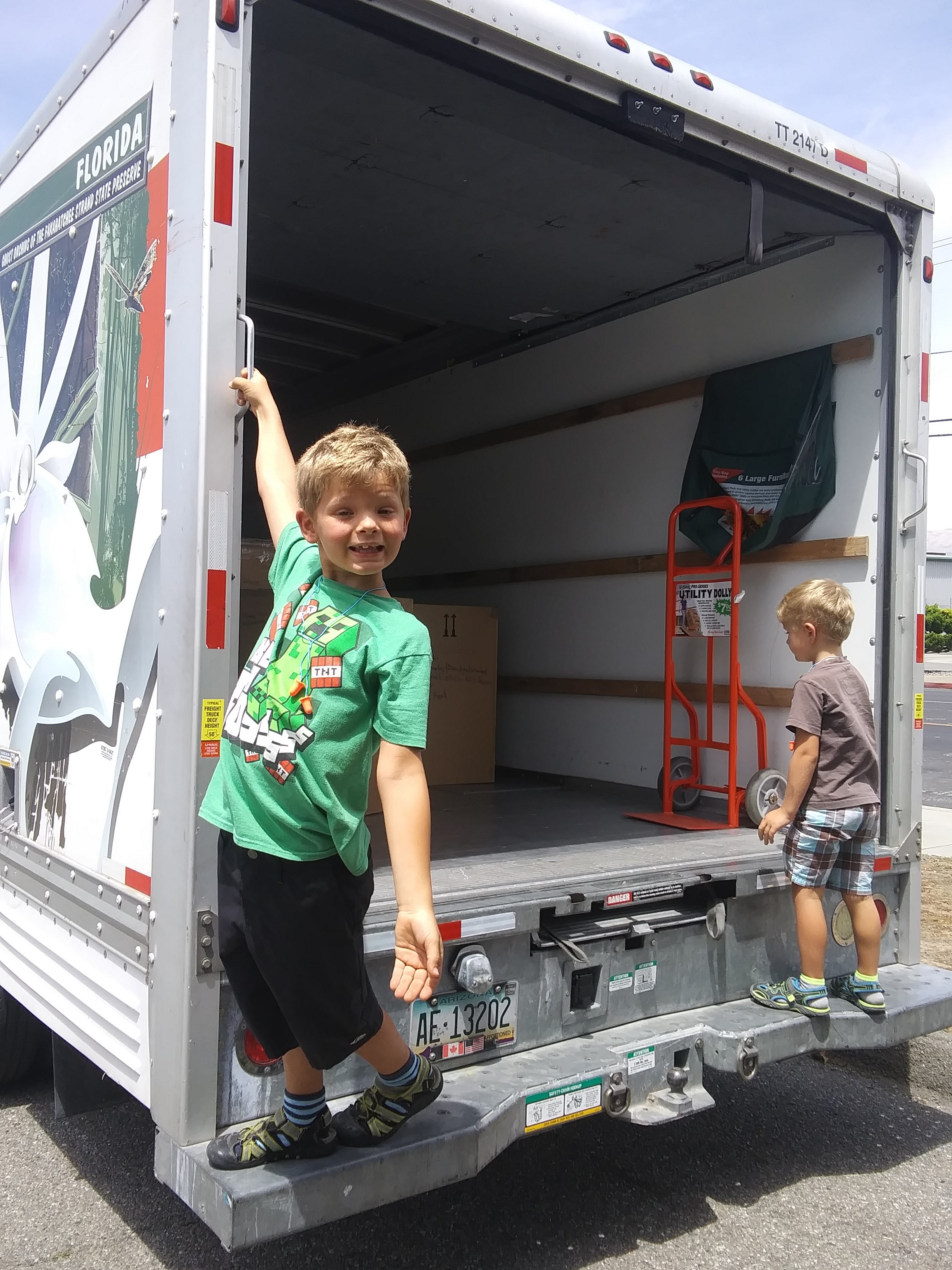 All unser Hab und Gut ist unterwegs: Im Atlantik schippert ein Container, im Truck holpern heute Abend 18 Kisten, zwei Räder, 4 Koffer und ein Schrubber los und morgen starten 5 Mann – na, eine Frau und 4 Mann – im vollgestopften FRANKY die 2000 Meilen. Hoffentlich sehen wir alles wieder – in Austin, Texas!