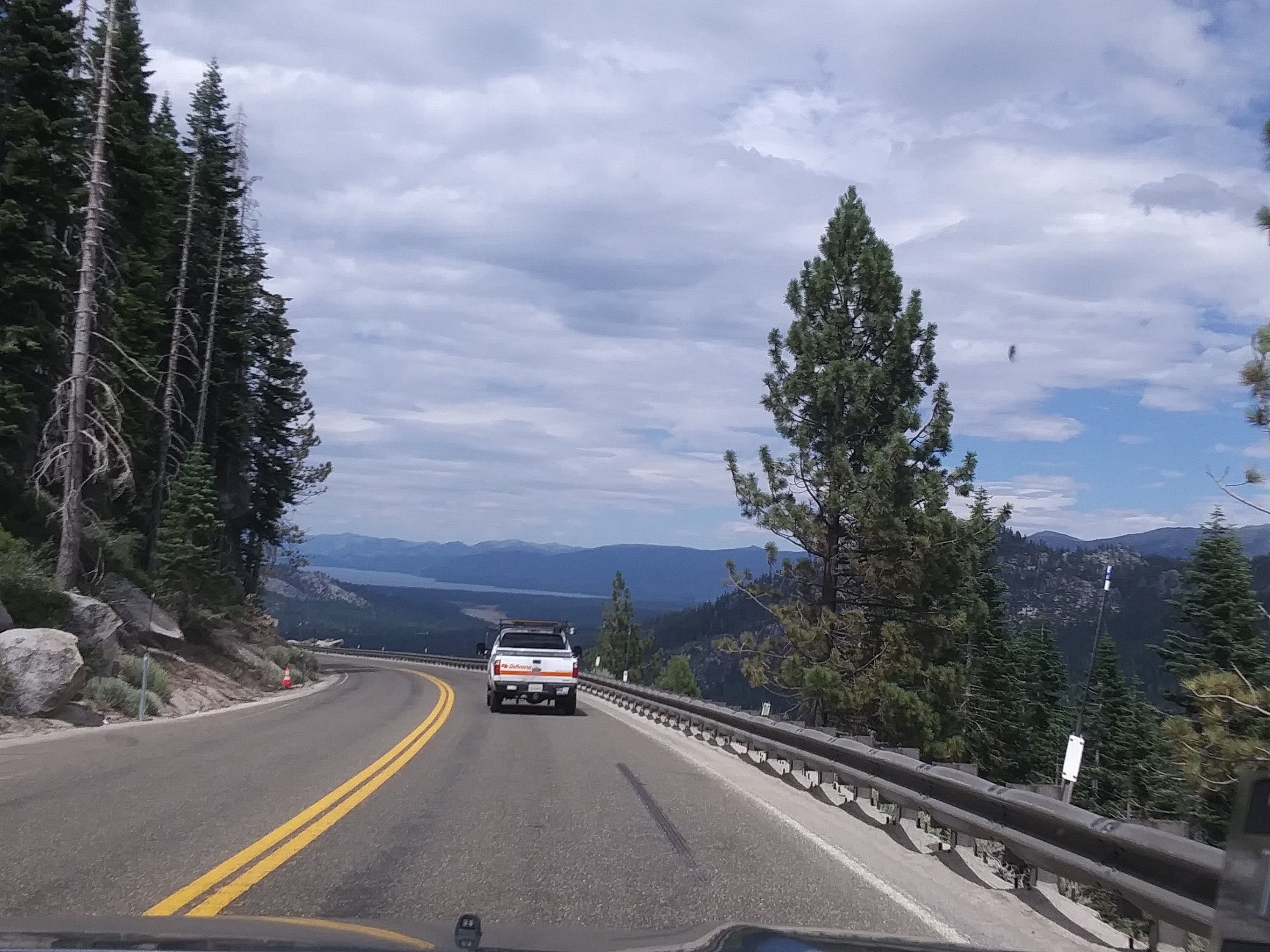 Servus Santa Clara hieß es dann endgültig so um 10.30 am. FRANKY brachte uns gut durch die erste vorsichtige Hitze, an Sacramento vorbei durch die Berge bis zum Lake Tahoe. Entspannte 4h mit Badefinale und buntem Abendhimmel.
